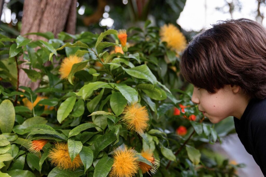À l’extĂ©rieur, le parcours gratuit Ă€ la recherche de la noisette rouge invite les familles Ă  dĂ©couvrir les sentiers du Jardin Ă  l’aide d’une application mobile.