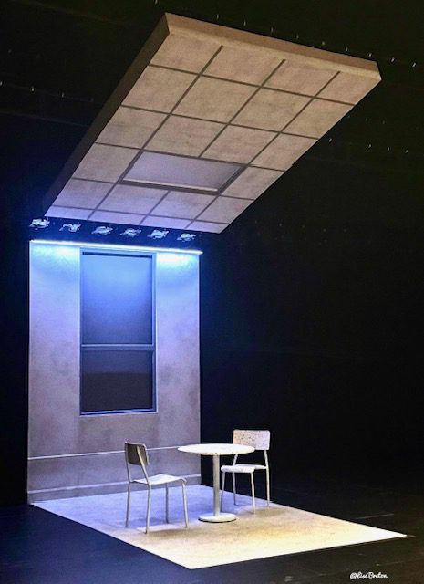 Une bonne idée le jeu de lumière par la fenêtre pour nous montrer le jour et la nuit. Comme ça se passe en prison, une table et deux chaises suffisaient.