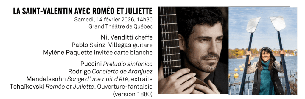 Ce mois-ci, l’Orchestre symphonique de Québec propose cinq rendez-vous qui explorent autant de façons de vivre la musique. Du grand symphonique aux atmosphères plus intimes, du romantisme à l’imaginaire cinématographique, tout en offrant un aperçu de celles et ceux qui façonneront la scène musicale de demain, chaque concert trace sa propre route!
