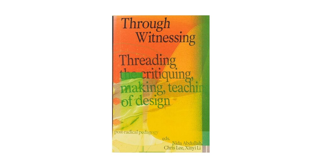 Through Witnessing s’ouvre comme un atelier en train de se faire — un lieu où penser, fabriquer et enseigner le design deviennent des gestes inséparables. Nida Abdullah, Chris Lee et Xinyi Li tissent ici un livre à plusieurs voix, à la fois manifeste et conversation. Ils ne cherchent pas à définir ce que le design est, mais à observer ce qu’il fait, comment il s’inscrit dans des rapports d’attention, de pouvoir et de soin.