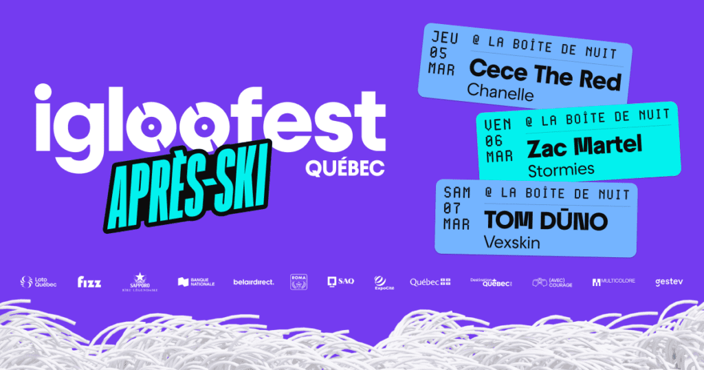 Le froid n’aura même pas le temps de se faire sentir à Igloofest Québec, une présentation de Loto-Québec en collaboration avec Fizz : les Après-Ski de la Boite de Nuit St-Joseph sont de retour pour prolonger les festivités jusqu’aux petites heures les 5, 6 et 7 mars prochains. Gestev dévoile aujourd’hui les six talents locaux qui se relaieront aux platines lors de cette série de soirées conçue pour les irréductibles de musique électronique, avec Cece The Red, Zac Martel et Tom Dūnocomme artistes vedettes.