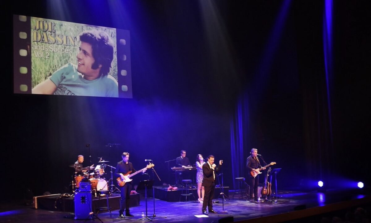 Durant le spectacle, on pouvait voir sur un écran géant au-dessus des musiciens des photos d’époque de Joe Dassin, des 45 tours de ses singles, de beaux paysages et des amoureux. Un beau rappel de l’époque.