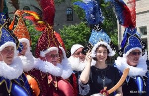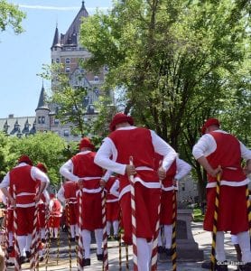 Les échasseurs passant devant le Château Frontenac Photo @Lise Breton
