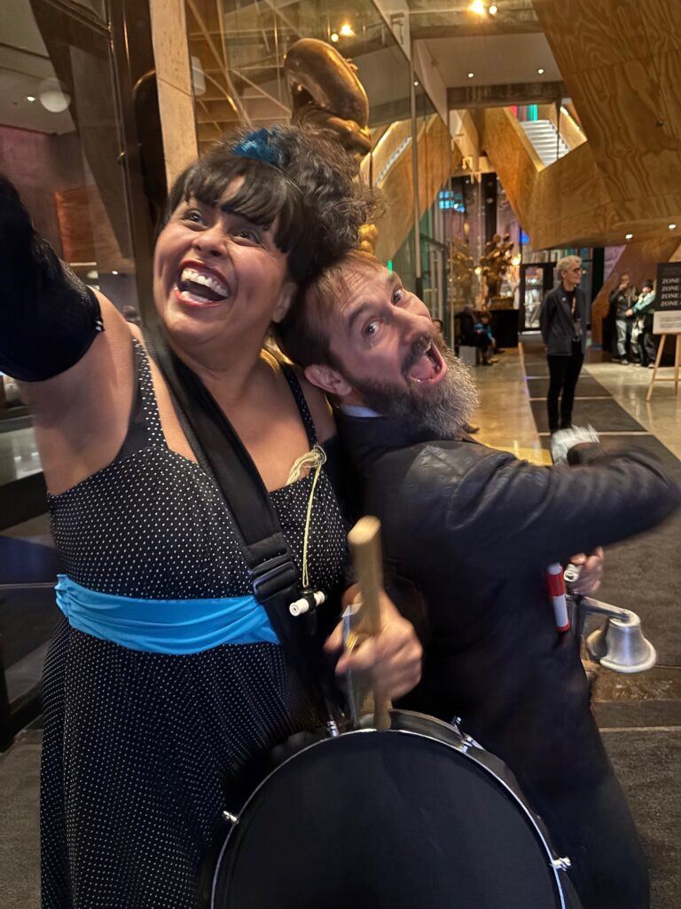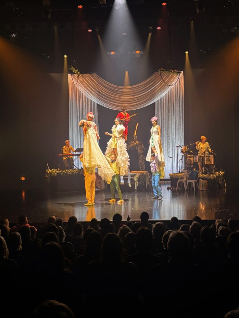 Un spectacle nourri d’interactions avec la foule, qui peut même provoquer un certain dérapage, comme dans les vraies noces. L’univers musical, aux accents antillais et trad québécois bien assumé, donne le ton d’une noce rétro qui regarde vers l’avenir.
