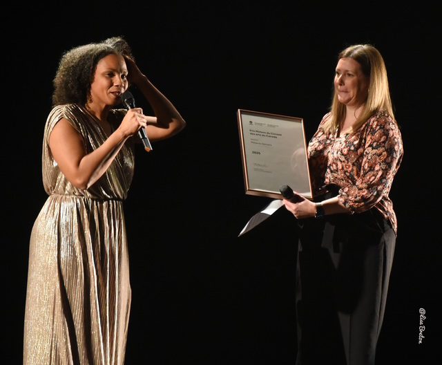 Marilyn Desrosiers, Directrice, Recherche, mesures et analyse des données Conseil des Arts du Canada a remis le prix Molson à Mélanie Demers.