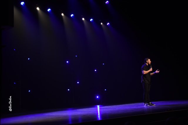 Aujourd’hui fin prêt, Sam Breton est arrivé sur scène avec un grand sourire et nous a confié des bouts de sa vie sans retenu et sans pudeur. Durant le spectacle, Sam a abordé avec intensité ce que sa vie d’humoriste lui procure, mais avoue qu’il s’était un peu oublié.