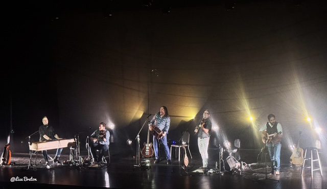 Ce concert du légendaire quintette nous permet d’entendre des harmonies vocales riches, de la vielle à roue, de la podorythmie, du bouzouki, de la bombarde québécoise et des airs des violons et d’accordéon. Une musique festive, riche, vivante et inventive avec une ambiance survoltée. Beaucoup d’applaudissements et de tapages de mains. C’était beau aussi lorsque le public a chanté « Ma Louise ».