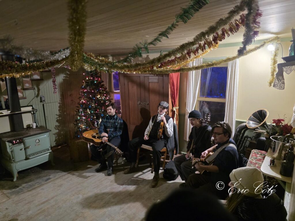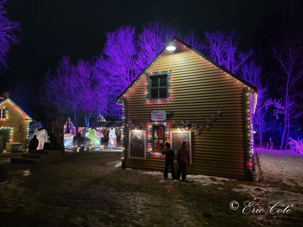 Nous entrons dans le Village québécois d’antan et la magie commence avec le bureau de poste des lutins : Le Courrier du pôle Nord.  Une lutine nous reçois et ne comprends pas pourquoi autant de monde entre dans le bâtiment.  En descendant sur le chemin, il y a des personnages que l’on croise, en plus des nombreuses maisons décorées avec de vieilles guirlandes de Noël.  La musique nous met dans l’ambiance avec ses rigodons ou chansons de Noël chantées par les plus grands : Fernand Gignac, Ginette Reno, pour ne nommer que ceux-là.