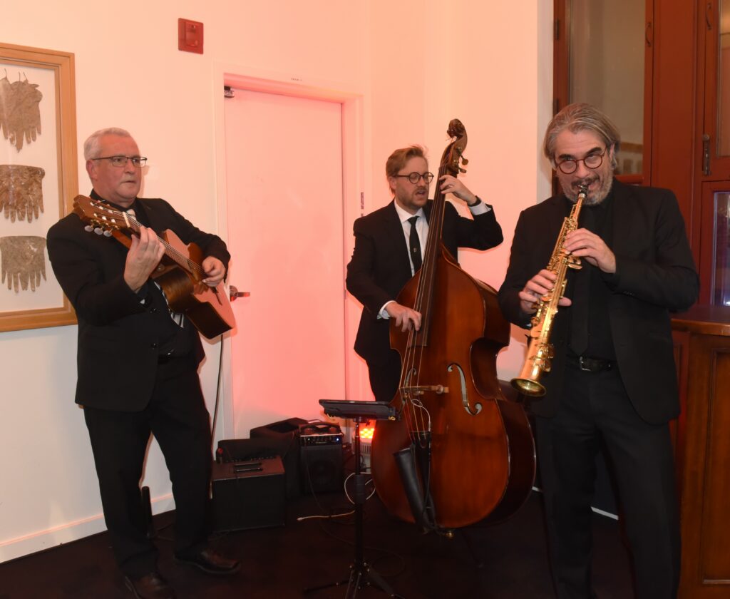 Joël Thibault au saxophone, Guy Bergeron à la guitare et Ian Simpson à la contrebasse.