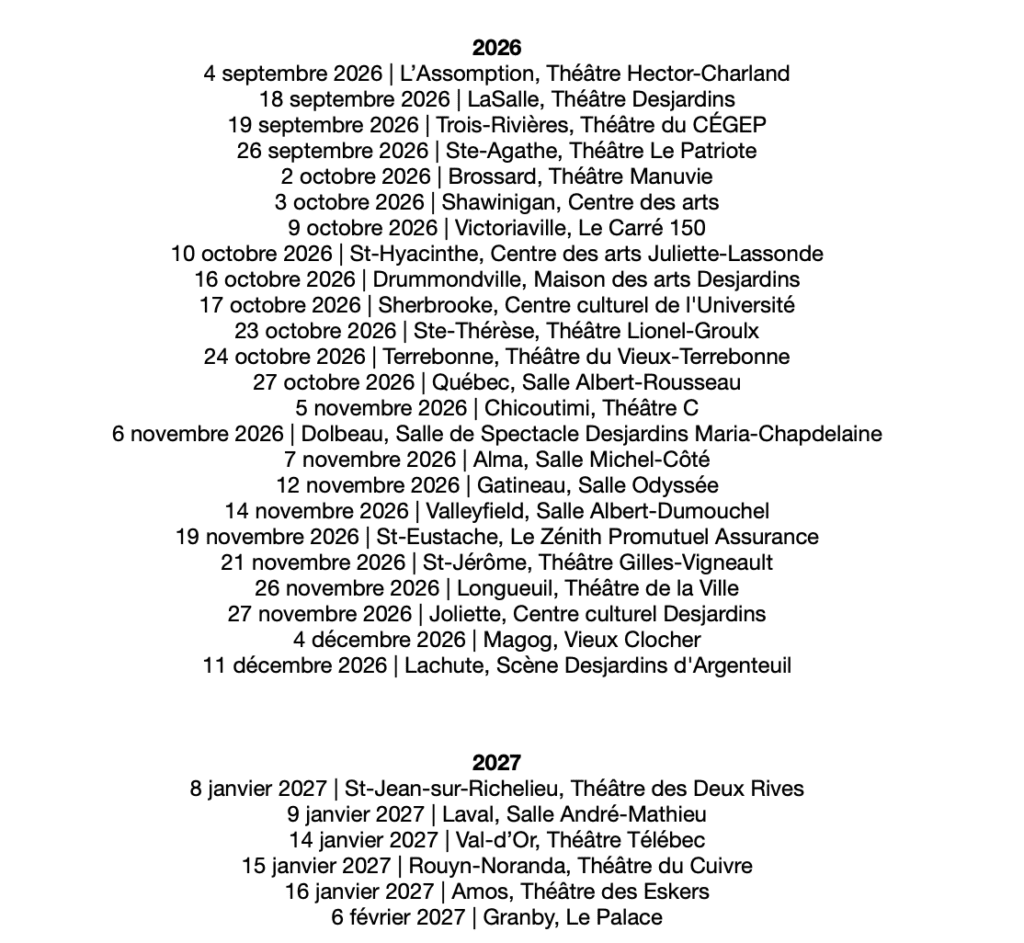 EN TOURNÉE PARTOUT AU QUÉBEC DÈS SEPTEMBRE 2026