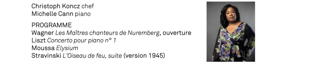 De l’élan romantique des Maîtres chanteurs de Wagner à la virtuosité du Premier concerto pour piano de Liszt, de la vision contemporaine d’Elysium de Samy Moussa à l’imaginaire foisonnant de L’Oiseau de feu de Stravinski, ce concert traverse les époques et célèbre la puissance évocatrice de l’orchestre.