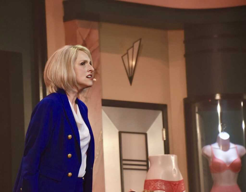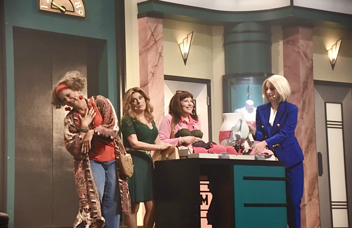 Ce sont 4 femmes qui se rencontrent dans un magasin. Un ascenseur en fond de scène pour changer d’étage, l’habillement des femmes ne passent pas inaperçu, c’est très coloré. Elles se promènent d’un étage à l’autre : sous-vêtements, accessoires, souliers, toilette, café… À la fin, plusieurs changements de robes très belles. Et ça finit comme un party avec de la bonne musique entrainante et des flocons de papiers. Un spectacle très festif!