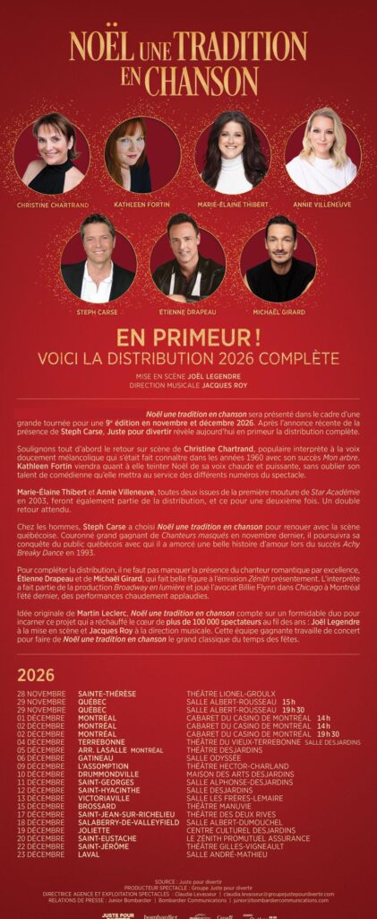 Noël une tradition en chanson dévoile sa distribution 2026 en primeur !