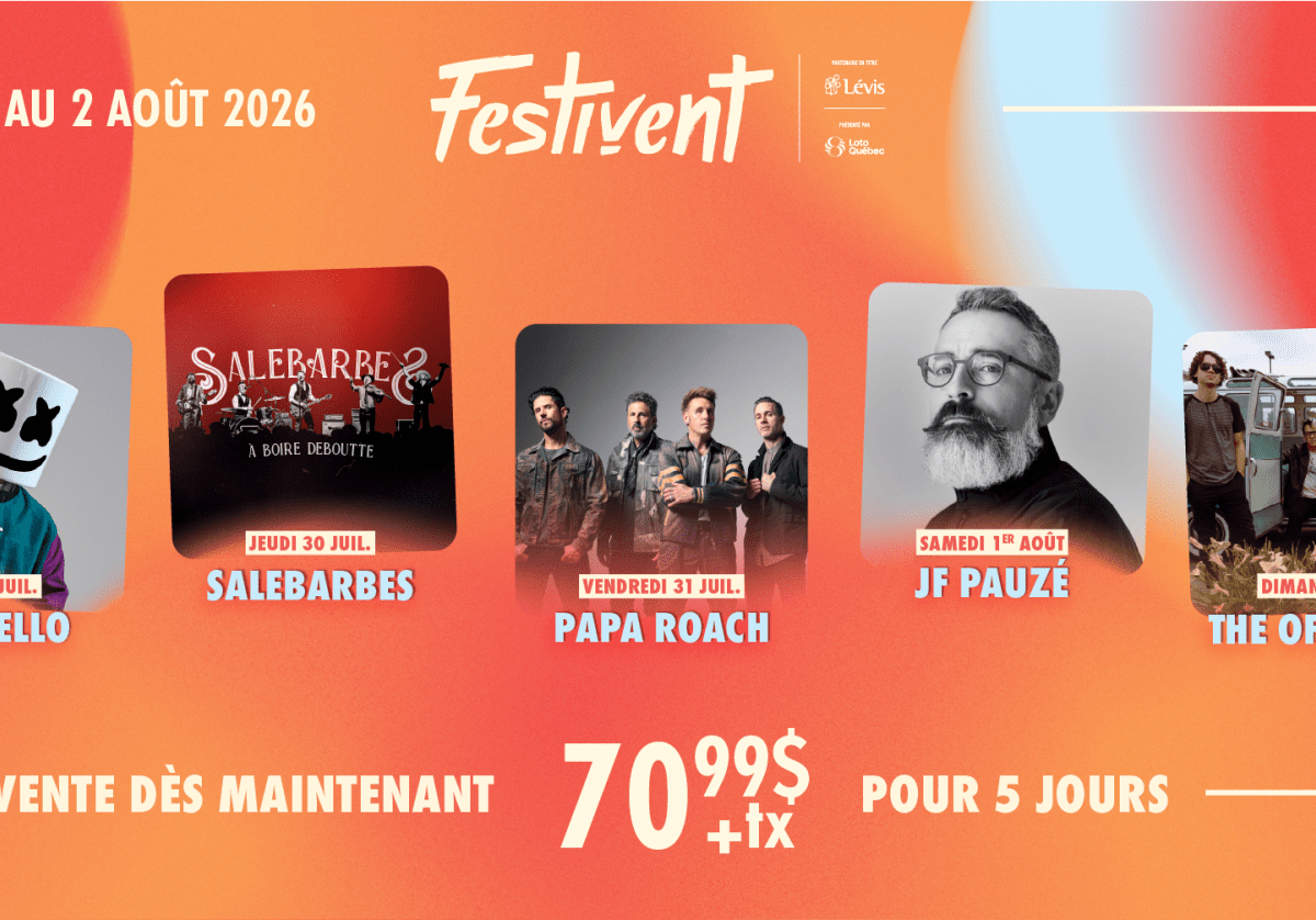 MUSIQUE, MANÈGES, MONTGOLFIÈRES ET PLUS ENCORE ! Après avoir dévoilé plus tôt cette année la présence de Salebarbes, Papa Roach et The Offspring à sa 43e édition, voici que le Festivent de Lévis revient en force en présentant sa programmation complète ! Du 29 juillet au 2 août, les festivaliers auront le privilège de voir une multitude d’artistes en alternance sur […]