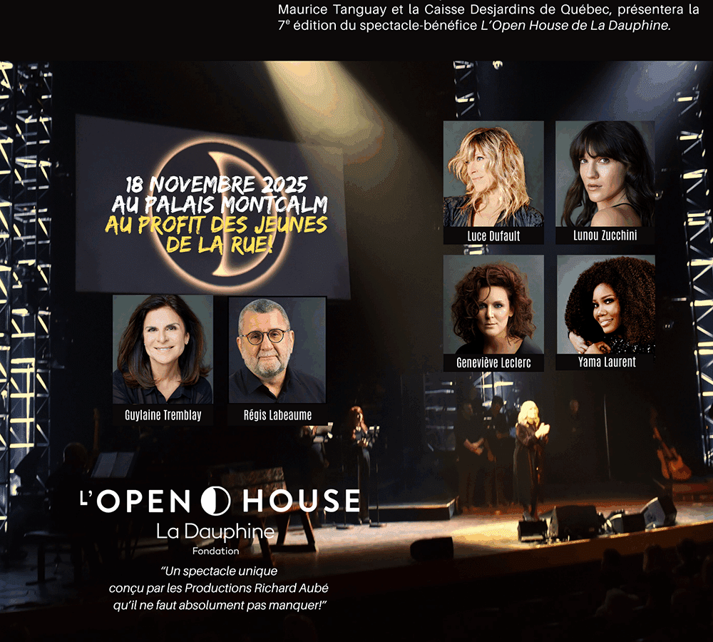 L’événement se tiendra le 18 novembre 2025, pour une 7e année. Incontournable pour la Fondation Maison Dauphine, L’Open House 2025 de La «Dauphe», comme l’appellent les jeunes, se tiendra au Palais Montcalm le 18 novembre à 20h. Pour cette soirée haute en émotions, le public aura droit à un spectacle réunissant Guylaine Tremblay, Régis Labeaume, Luce Dufault, Geneviève Leclerc, Lunou Zucchini et […]