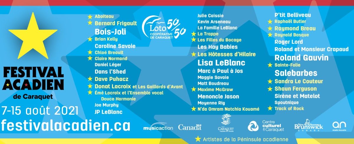 L’édition 2021 du Festival acadien de Caraquet aura bel et bien lieu du 7 au 15 août ! Les spectacles seront présentés devant public avec les restrictions sanitaires imposées par le Gouvernement du Nouveau-Brunswick. Les mesures de distanciation qui sont en place en ce moment sont prévues pendant l’événement, mais si la situation évolue dans un sens […]