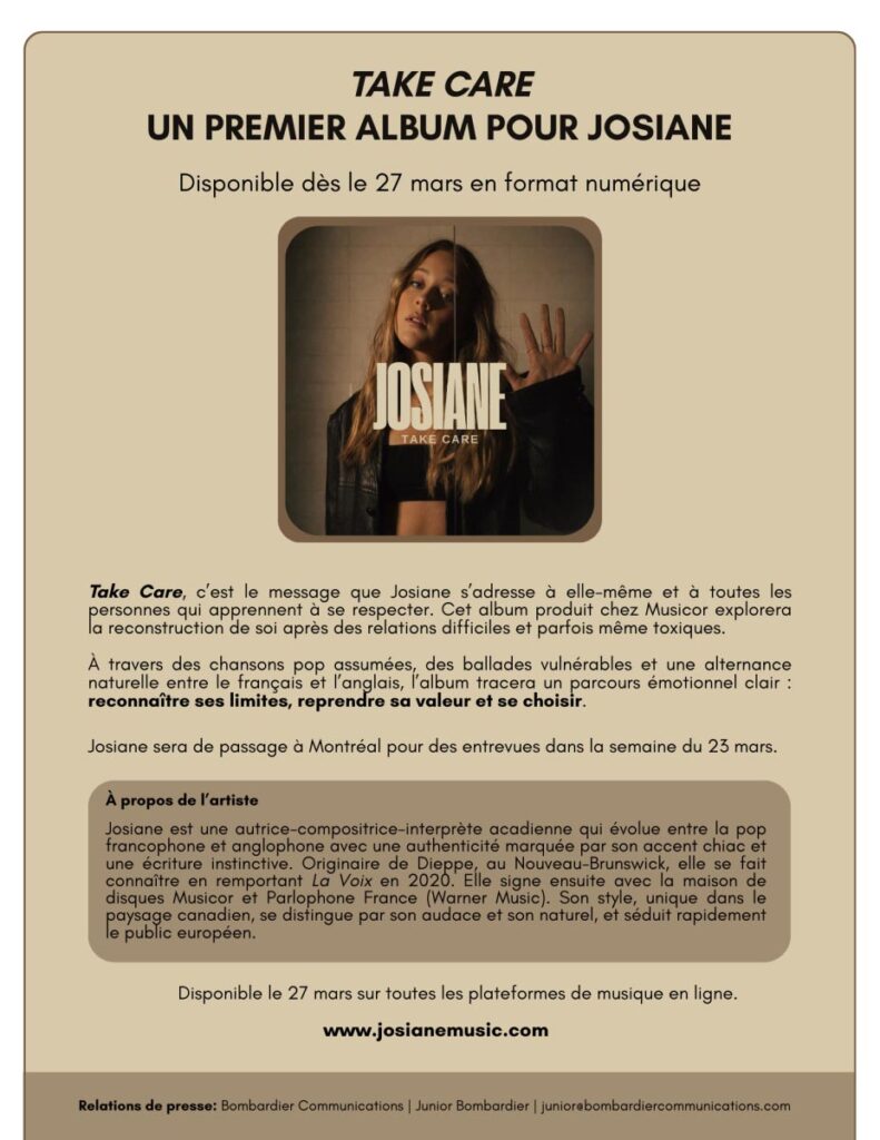 TAKE CARE | Premier album de Josiane disponible dès le 27 mars !