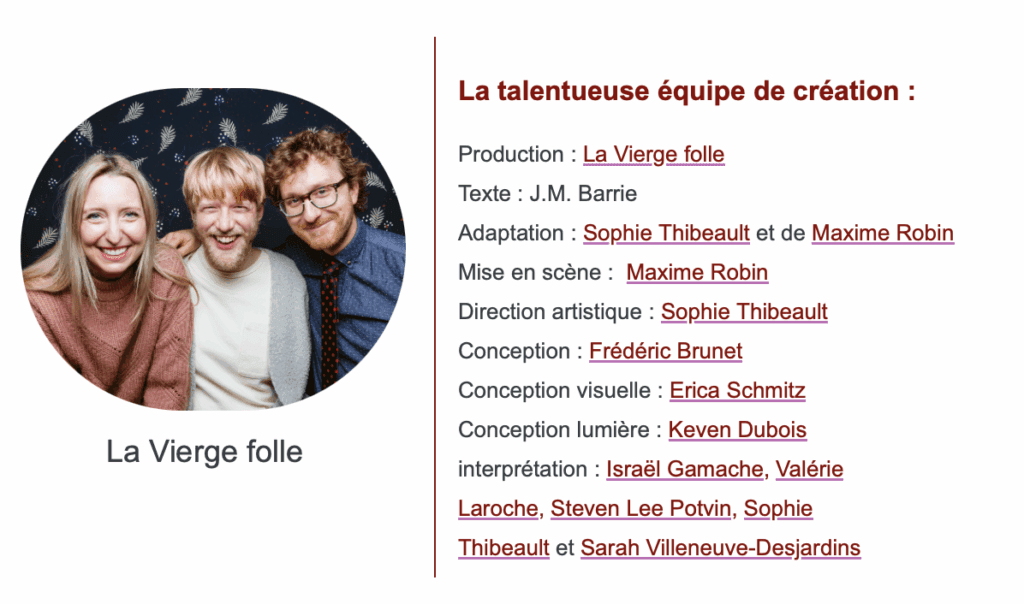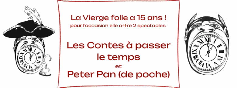 Pour ses 15 ans, La Vierge folle se fait un cadeau à sa mesure : elle revient avec six de ses contes préférés – dont l’incontournable Un beau grand parking de Fabien Cloutier – dans son classique Les Contes à passer le temps. Et comme la fête est encore plus belle quand tout le monde y est convié, la compagnie ajoute cette année un Peter Pan (de poche), un spectacle taillé sur mesure pour émerveiller petits et grands.