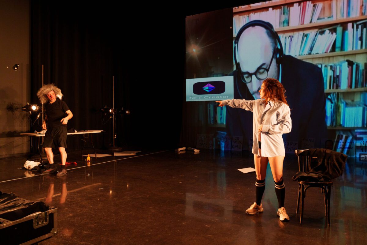 Ils y mettent en jeu la notion de marchandisation et les mécanismes de détournement de l’art, et ce, par la création d’un encan de JNF (NFT) fabriqués en direct devant public.